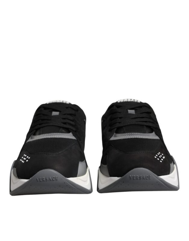 Versace Black Leather Neoprene Chunky Low Top Sneakers Squalo Shoes