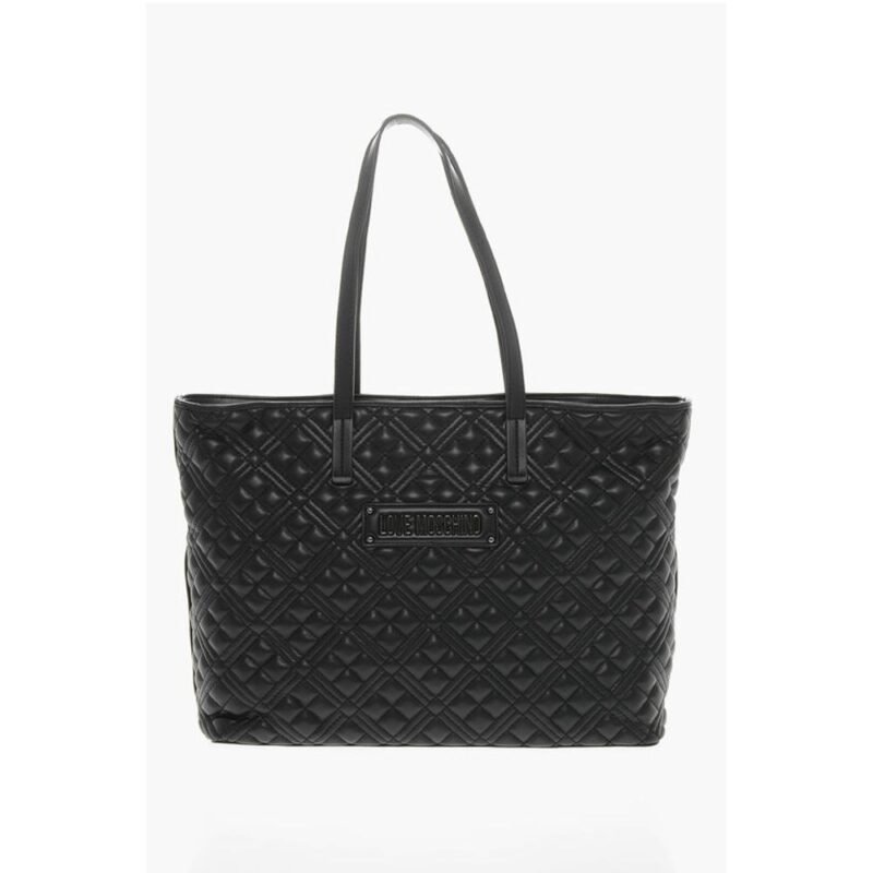 Moschino LOVE Quilted Faux Leather Tote Bag with Metal Logo