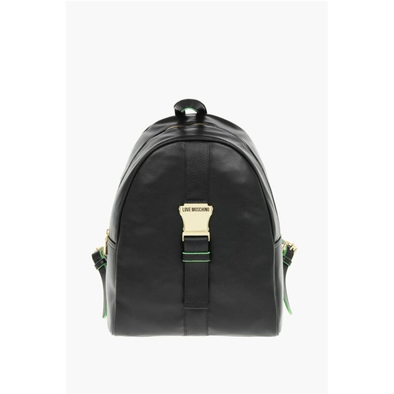 Moschino LOVE Logoed Shoulder Strap Faux Leather SAFETY Backpack