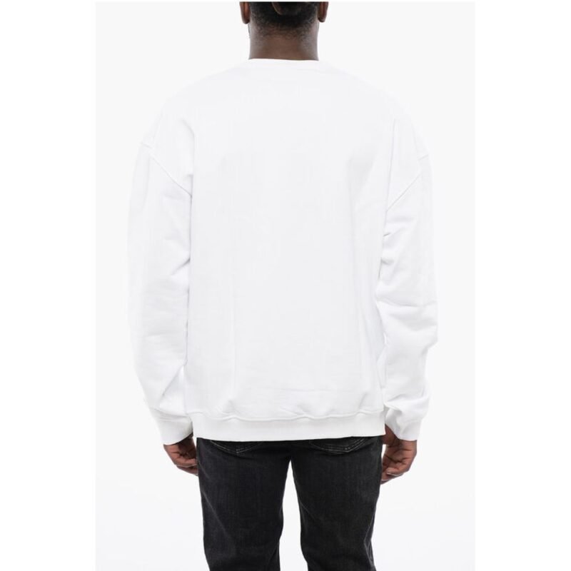 Diesel Solid Color S-NABEL-M Crew-neck Sweatshirt with Cracked Effe