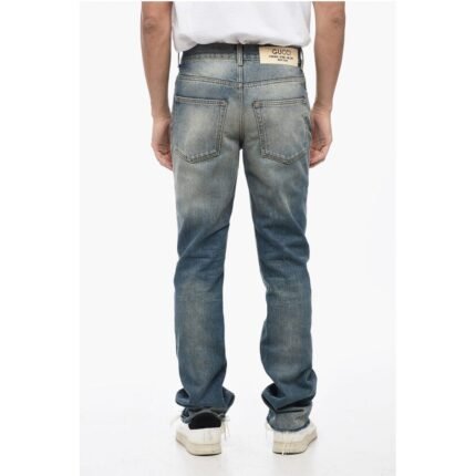 Gucci Skinny Fit Vintage Wash Denims with Fringed Hem 16cm