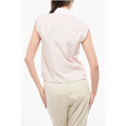 Description: Details: Spring-Summer French collar Pink Stripes Buttons Sleeveless Breast pocket Front closure Orange P642744