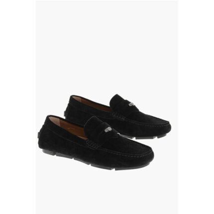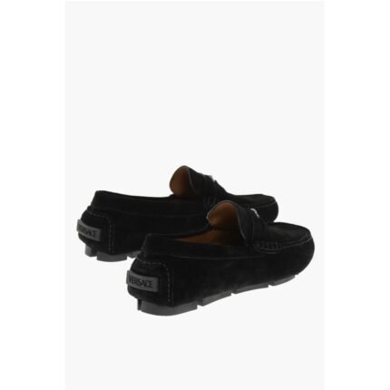Versace Suede Penny Loafers with Silver- Effect Logo