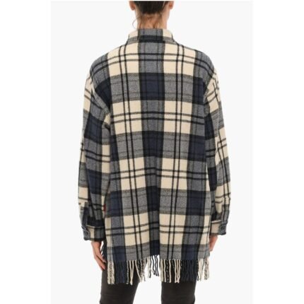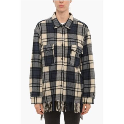 Woolrich Plaid Check Cotton Blend Shirt with Fringed Details