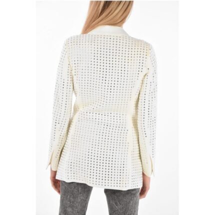 Description: Details: Spring-Summer White Rhinestone 2 pockets Lined Single-breasted jacket Flap pocket Applications Made in Italy EU Preferential Origin (FTA/TCA)