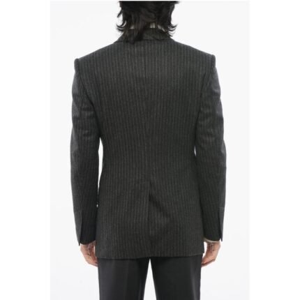 Tom Ford Pinstripped Wool Double- Breasted Blazer with Peak Lapel
