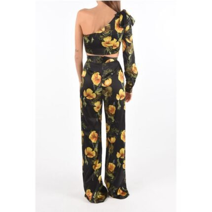 Description: Details: Autumn-Winter Yellow one shoulder Black Floral Print Made in Italy EU Preferential Origin (FTA/TCA) Flower Fever P367076