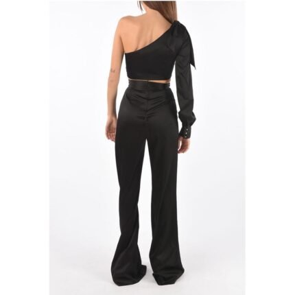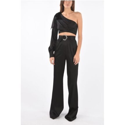 Philipp Plein COUTURE silk boot cut pants suit with one shoulder crop top