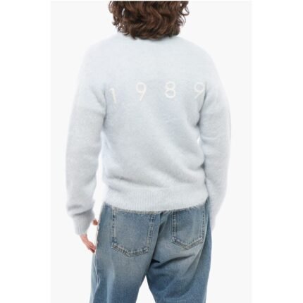 1989 Studio Solid Color V-Neck Fuzzy Cardigan with Embroidered Logo