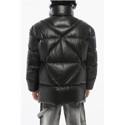 Armani EMPORIO Leather Down Jacket with Hidden Closure