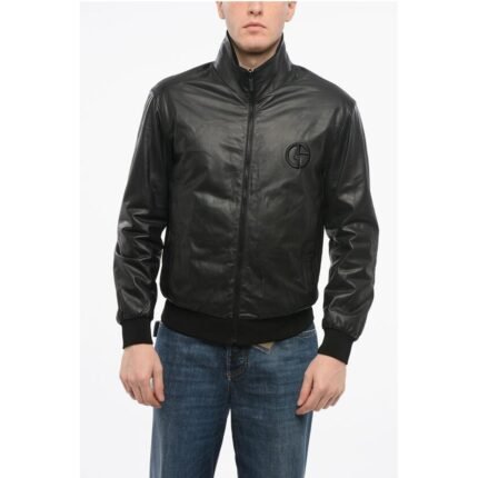 Armani GIORGIO Reversible Leather Jacket with Embroidered Logo