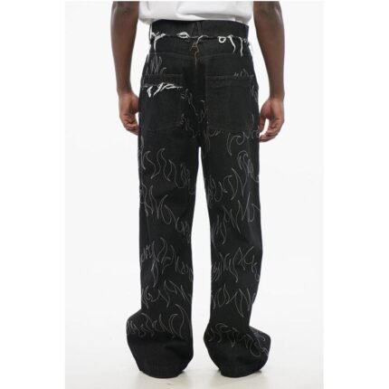 Description: Details: Dark wash Vintage effect 4 pockets Denim cotton Buttons Logo Belt loops Embroidery Spring-Summer Black Denim Rules Co: