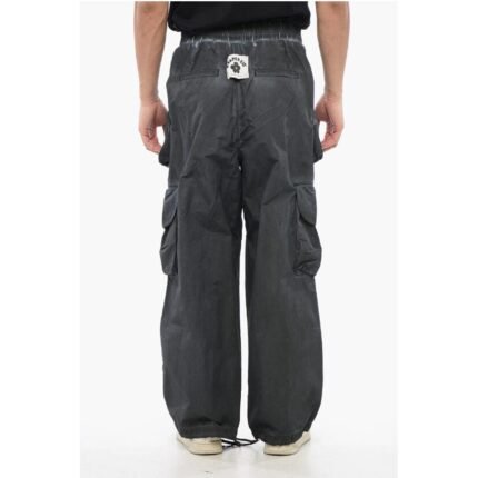 A Paper Kid Faded Effect Nylon Cargo Pants with Elastic Waistband