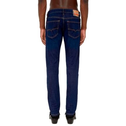 Diesel slim-fit jeans in dark blue cotton with a slight stretch, five pockets, button fastening, logo patch on the back
