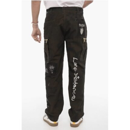 Description: Details: Spring-Summer Beige Multi-pocketed Belt loops Normal waisted Embroidery Logo Buttons Front closure Button &zip fly closure Stretch PANTONE
