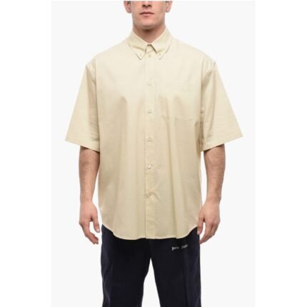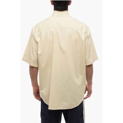 Description: Details: Spring-Summer Button-down collar Beige Buttons Logo Embroidery Breast pocket Short sleeves Made in Italy Front closure PANTONE P647413