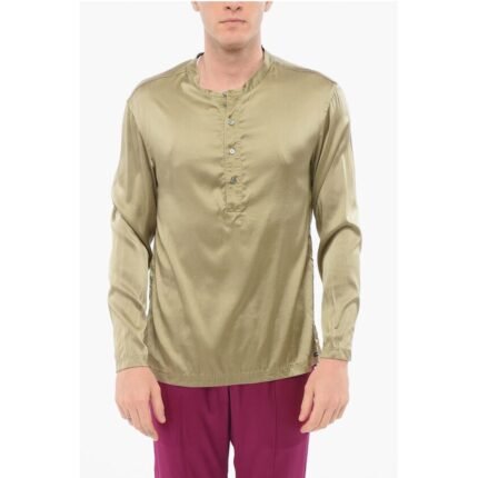 Tom Ford Silk Satin Pijama Shirt with Mandarin Collar
