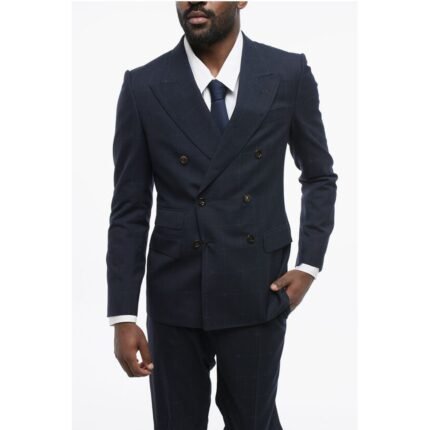 Blue Wool Suit Double Breasted Suit Two Pieces Drop 7 Slim Fit Jacket 2 Button Closure Threaded Pockets Chest Pocket