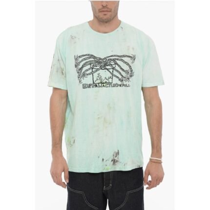 Westfall Dirty Effect Crew-neck T-Shirt with Front Print