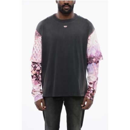 Diesel Oversized T-WESHER-N5 T-Shirt with Patterned Double-Layer Sl