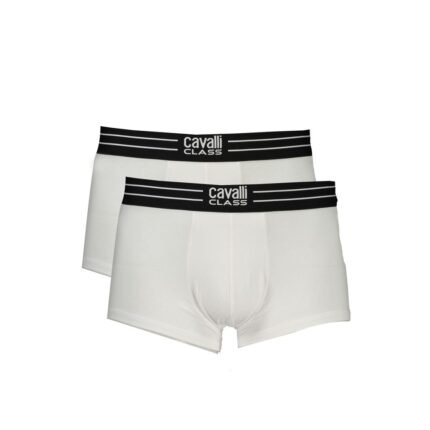 Step into luxury with Cavalli Class’s alluring white boxer briefs. These bi-pack essentials redefine comfort with their plush cotton-elastane blend,