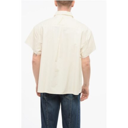 Description: Details: Spring-Summer Italian collar White Front closure Made in USA Oversized Buttons Short sleeves Raw cut edge Co: 100%