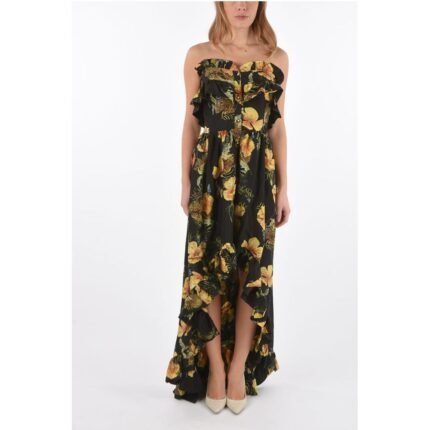 Philipp Plein COUTURE floral-print silk APPEAL strapless maxi asymmetrical