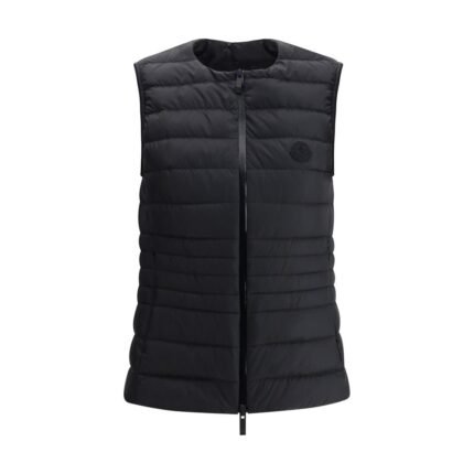 The Moncler Irigny Down Vest features a front double-zip closure, offering convenience and versatility. The two welt side pockets with