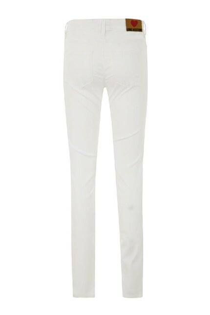 Elevate your denim game with these stunning Love Moschino women’s jeans. Crafted in Italy, these crisp white jeans boast a
