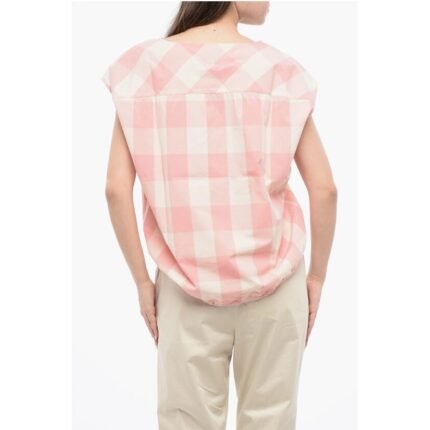 Woolrich Gingham Cotton Sleeveless Blouse with Drawstringed Bottom