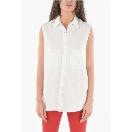 Woolrich Cotton Sleeveless Maxi Shirt with Double Breast Pockets