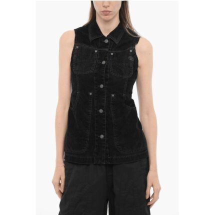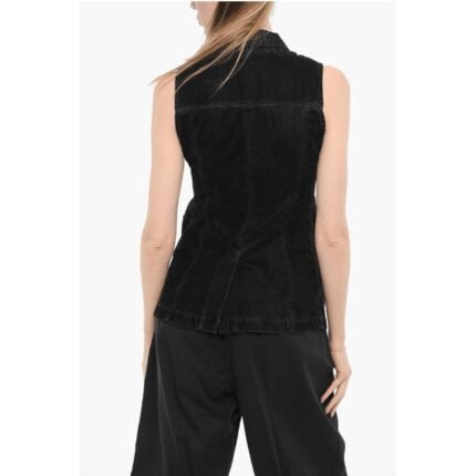 Description: Details: French collar Black Multi-pocketed Sleeveless Velvet Buttons Front closure Spring-Summer ST VALENTINE P516784