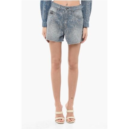 Versace JEANS COUTURE Animal Patterned Denim Shorts with Buckle Deta