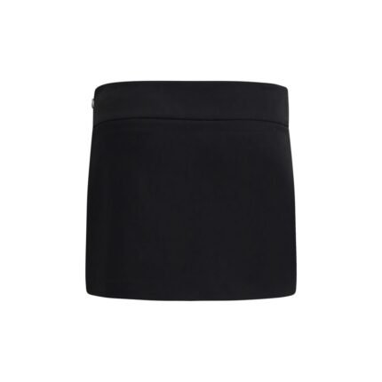 Diesel’s O-dixy miniskirt is a distinctively designed garment featuring a wide waistband decorated with a large Oval D metal plaque