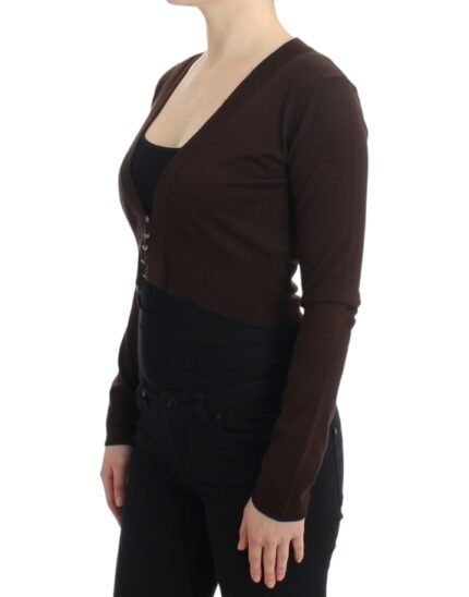 Cavalli Elegant Brown Virgin Wool Cropped Cardigan