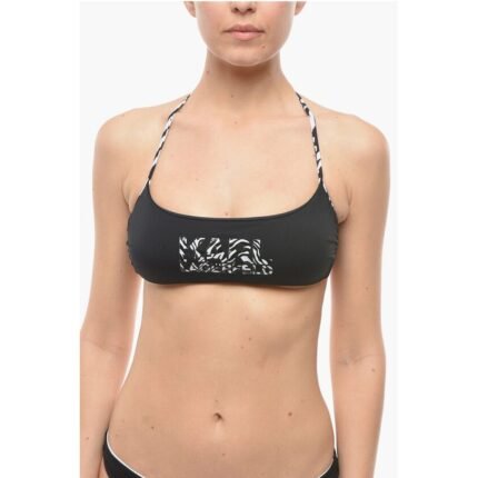 Karl Lagerfeld Solid Color Halter Bikini Top with Animal Patterned Details