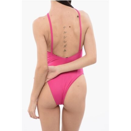 Versace’s Safety Pin One Piece Swimsuit is a bold and sophisticated piece with a V-neckline on the front that elegantly