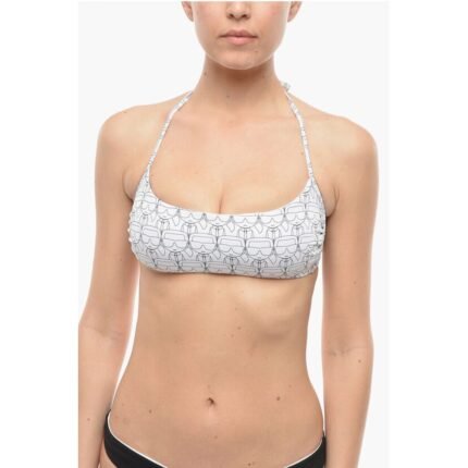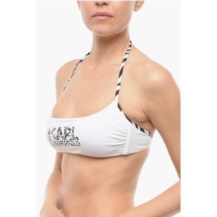 Karl Lagerfeld Animal Printed Logo Halter Bikini Top