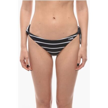 Karl Lagerfeld Awning Striped Bikini Bottom With Knotted Laces