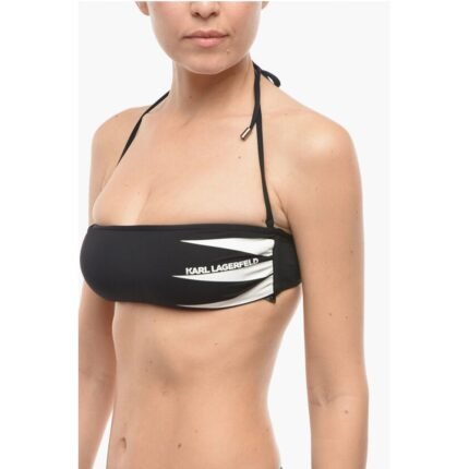 Karl Lagerfeld Bandeau Bikini Top with Printed Contrasting Logo