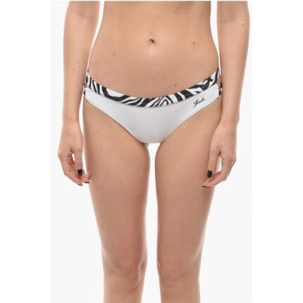 Karl Lagerfeld Bikini Bottom with Animal Patterned Edges and Cut-Out Detail