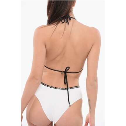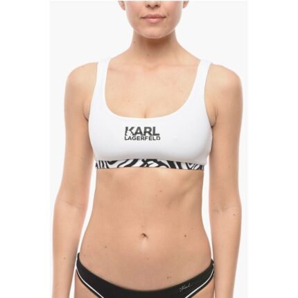 Karl Lagerfeld Solid Color Bandeau Bikini Top with Printed Contrasting Logo