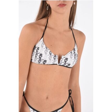 Karl Lagerfeld Plunge Bikini Top With Cut Out and Animal Detail