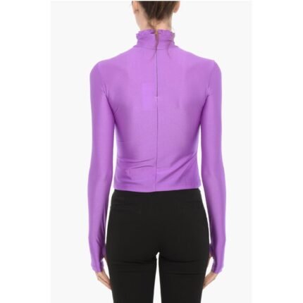 Description: Details: SHINY Stretch Made in Italy Autumn-Winter Purple Logo Long sleeves Rhinestone Zip closure Rear closure Turtleneck Pl: 85%