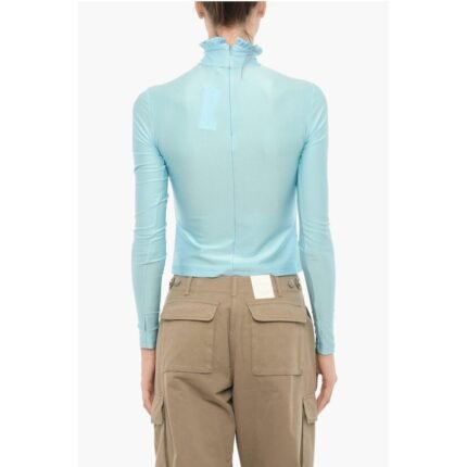 Description: Details: SHINY Autumn-Winter Light blue Logo Long sleeves Rhinestone Zip closure Stretch Rear closure Turtleneck Made in Italy Pl: