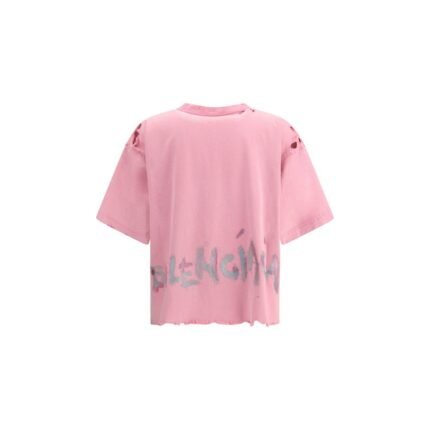 Balenciaga’s cotton T-Shirt is a bold, modern piece that combines comfort and contemporary style. The cropped design with ribbed crew