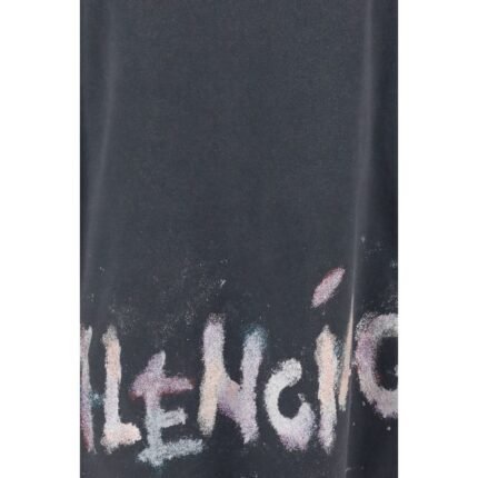 Balenciaga Black Cotton Logo Print Crew Neck Short Sleeves T-shirt