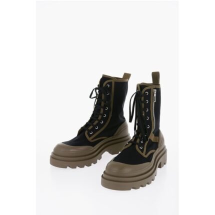 Bottega Veneta Canvas Lace-Up Boots with Contrasting Detail