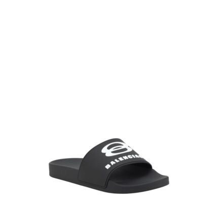 Balenciaga’s Rubber Slippers are a casual yet distinctive accessory, perfect for those seeking comfort without sacrificing style. The front strap
