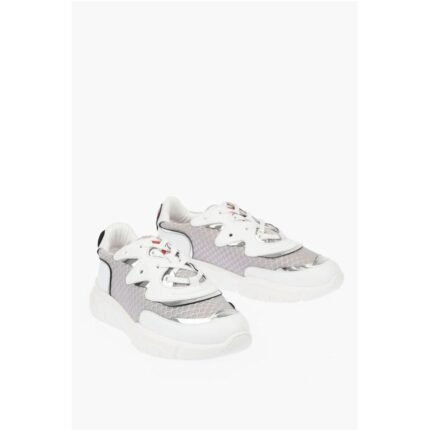 Moschino LOVE Leather and Fabric Sneakers RUNNING35 with Logoed Heart